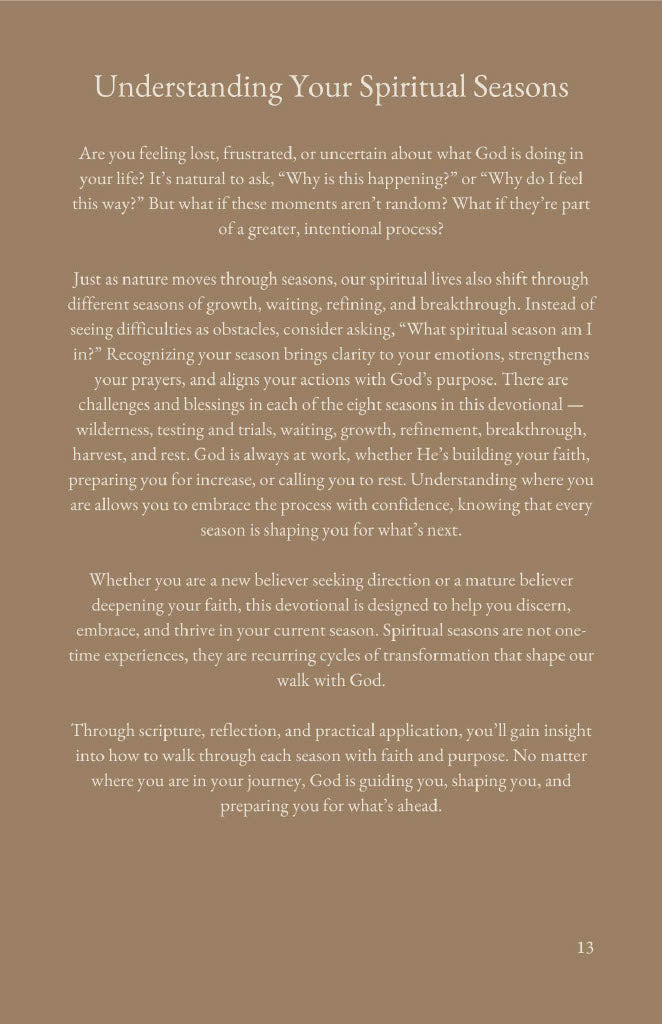 Grow deeper in your faith with Through Every Season, a beautiful fillable devotional journal designed to help you stay rooted in God no matter what life brings. Each season—Wilderness, Testing & Trials, Waiting, Growth, Refinement, Breakthrough, Harvest, and Rest—includes powerful scriptures (with direct links to Bible.com and the YouVersion Bible app), heartfelt prayers, and journaling space to guide your reflection. Complete with curated Spotify playlists for every season, this devotional will inspire you to trust God’s timing, embrace transformation, and walk in purpose through every chapter of your life.